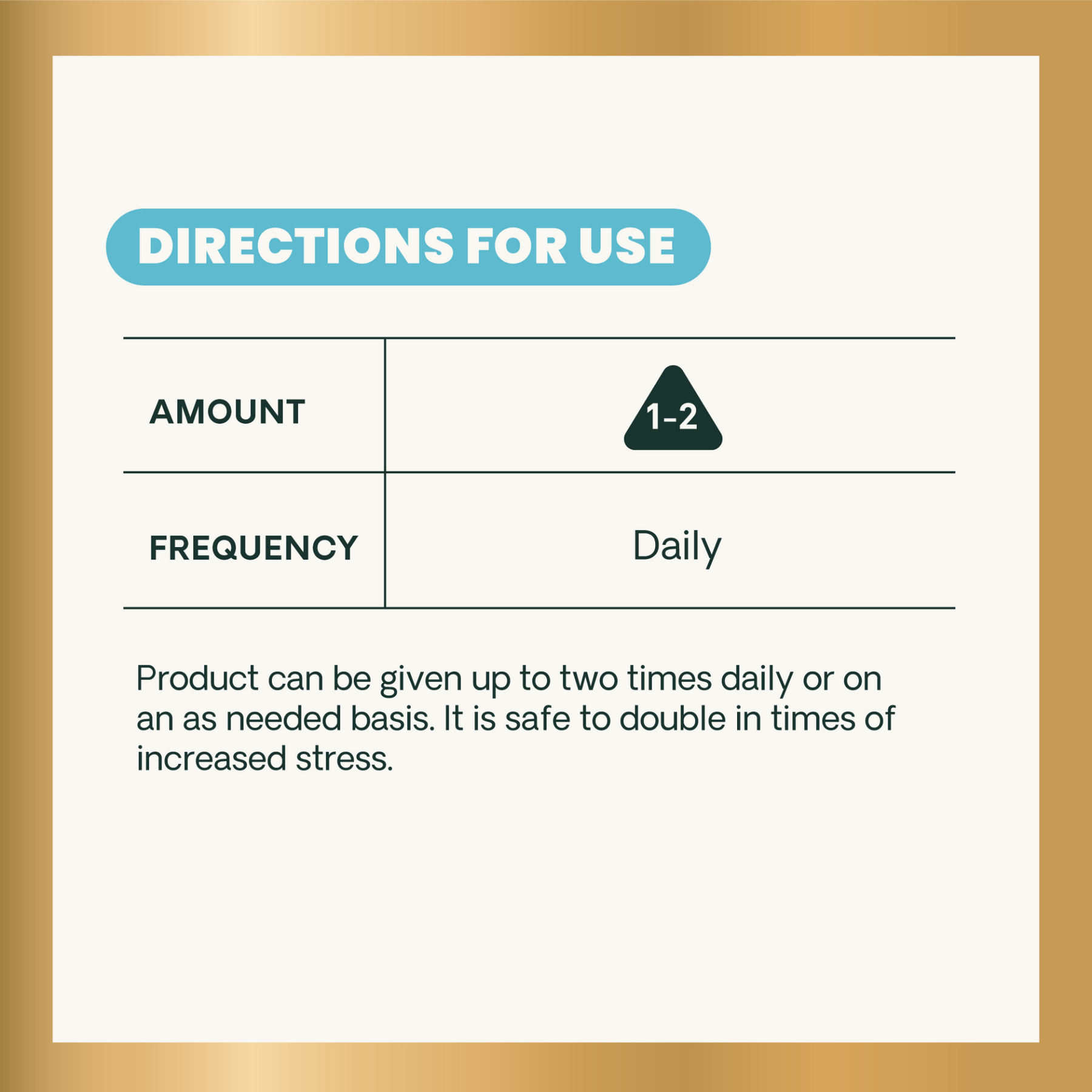 Product can be given up to two times daily, or on an as-needed basis. It is safe to double in times of increased stress.