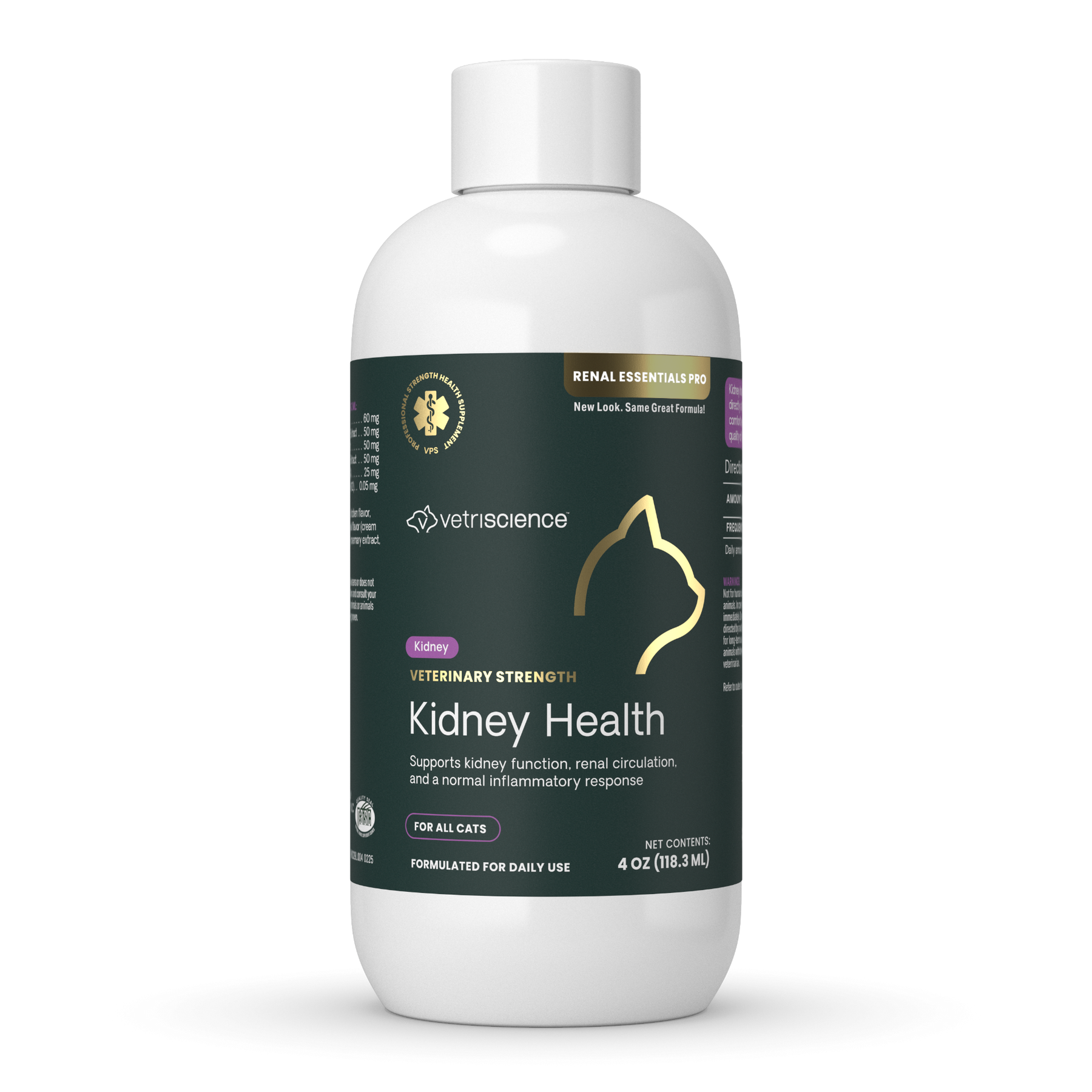 Veterinary Strength Kidney Health Liquid supports kidney health and function in cats, particularly during times of stress. The enhanced flavoring improves compliance from cats, and the convenient liquid formula makes administration simpleߞjust pour daily dosage over meals or administer directly into the mouth.